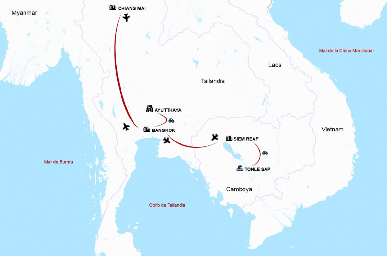 30 de Marzo de 2026: CHIANG MAI - SIEM REAP, con tránsito en Bangkok.